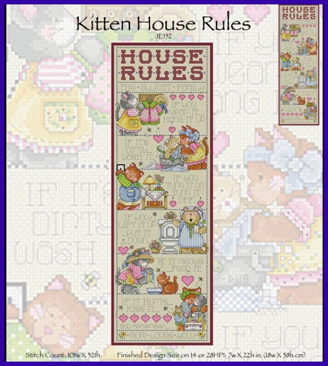 Kitten House Rules Cross Stitch Pattern