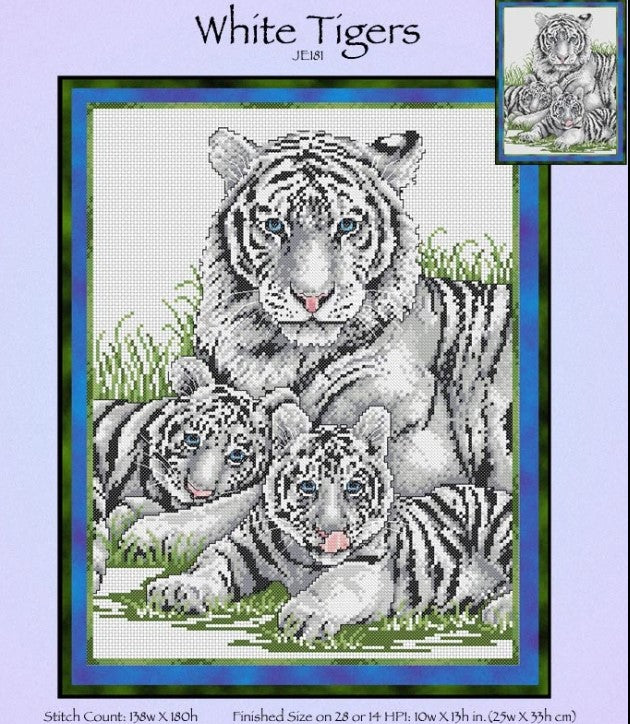 White Tigers Cross Stitch Pattern